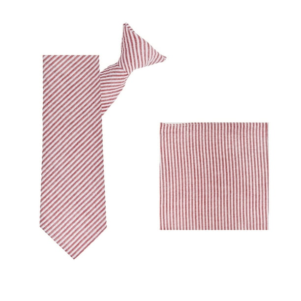 Jacob Alexander Boys Seersucker 14 Inch Clip On Neck Tie And Pocket Square Set Red Walmart Com