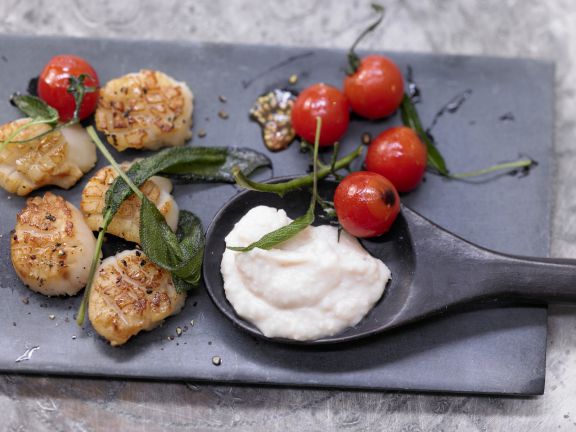 Gebratene Jakobsmuscheln An Auberginenmus Rezept
